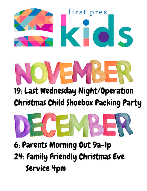 Welcome to First Pres Kids Ministry! Our mission statement is to create a safe, nurturing environment in order to present the Bible in ways children can understand, equipping them to make wise choices and develop their own relationship with Jesus and to partner with and encourage parents as spiritual leaders of their families as they disciple their children.