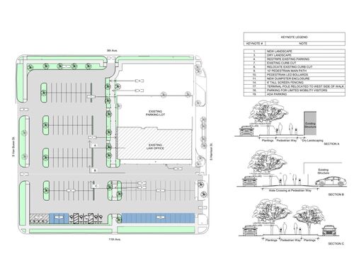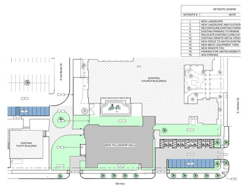 The southeast lot will continue to provide several handicap parking places, and our north lot will have handicap parking near the north entrance of our church. Fun fact: the walking distance from the south end of the north lot to the Sanctuary (across 11th street) is shorter than the walk from the south parking lot to the Sanctuary.