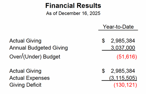 We receive around 25% of our financial support during December. Make sure your financial gift for 2025 in postmarked or in the Business Office by 5 p.m. Wednesday, December 31. You can also visit our GIVING PAGE HERE.