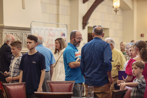 Please visit our Welcome Center, located in the center of our Great Hall as you come in from either the North or South entrance. We have a gift bag for first time guests, and we're happy to answer any questions, give you a tour, or show you where to go! If you're going to our 8:30 Gospel service or our 10:55 Traditional service, our Sanctuary is on the 1st floor, just inside the North door of the Great Hall. If you're going to our 11:05 Contemporary service, you'll go to the Welcome Center in the Great Hall, look for the elevators (directly across from the Children's wing entrance), and take the stairs that are right beside the elevators. You'll find restrooms and our Fellowship Center at the bottom of the stairs.
